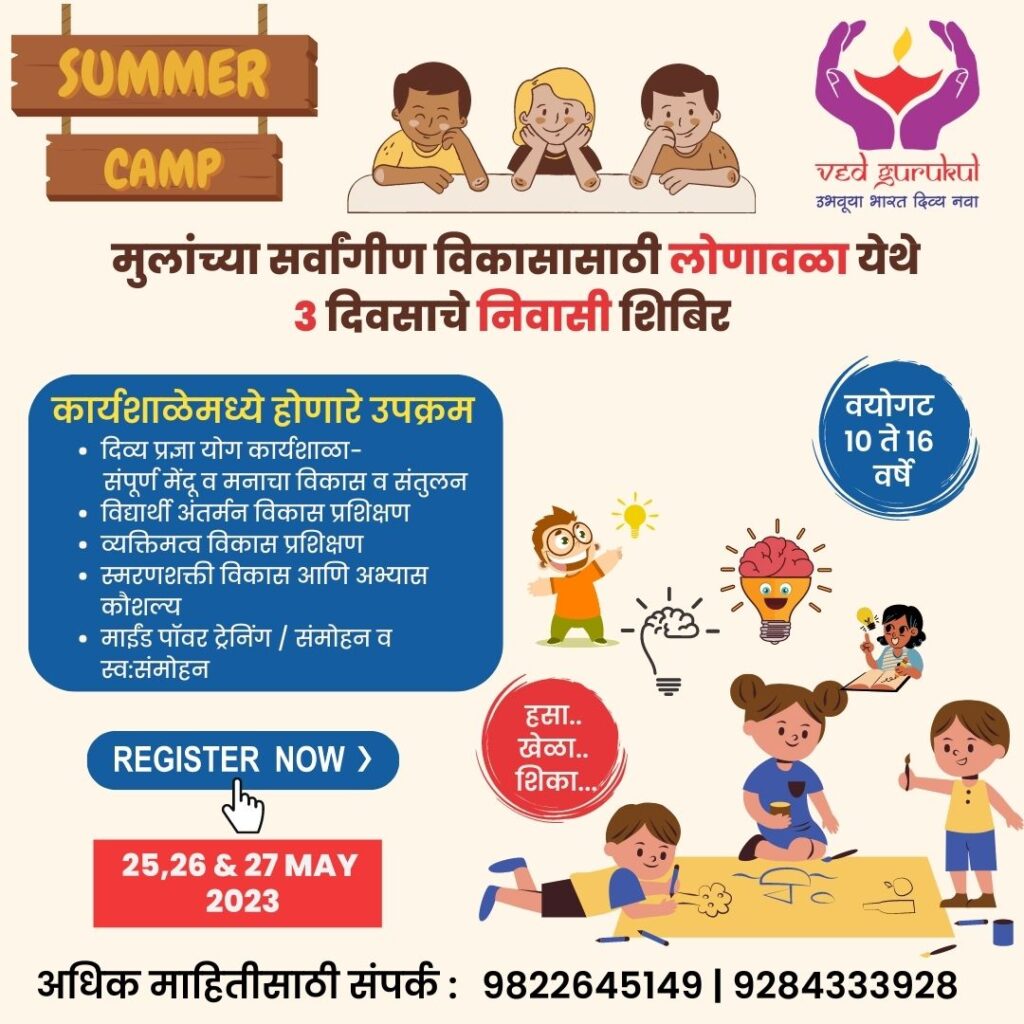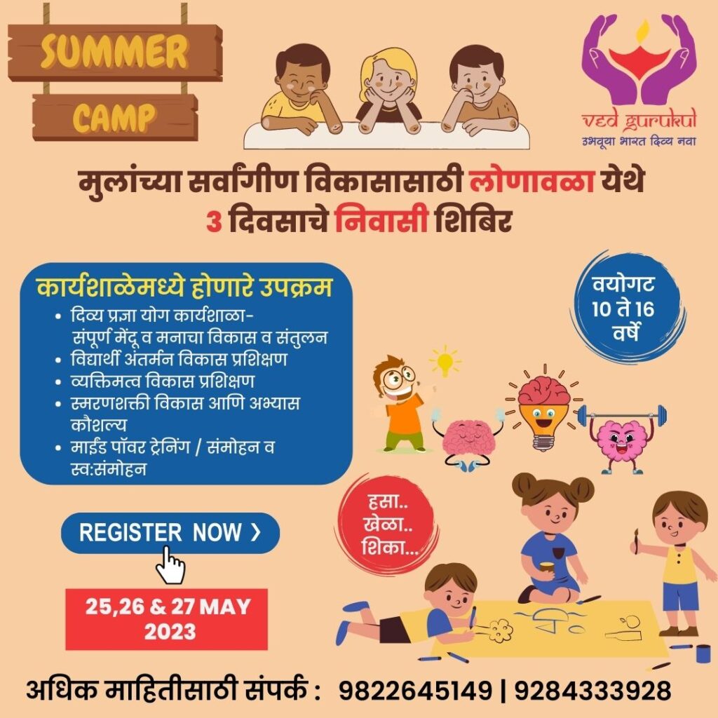 मुलांच्या सर्वांगीण विकासासाठी लोणावळा येथे 3 दिवसाचे निवासी शिबिर